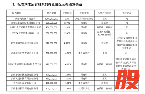 值得关注的是,诚泰保险大量股权正处于异常状态,比如第二大股东云南康旅控股,所持的13.4%股权被质押,昆明产业开发投资所持股权被质押、被冻结等等。目前,11家股东中,7家股东所持股权存在全部或部分被质押、被冻结的情况,合计占比约56.96%。